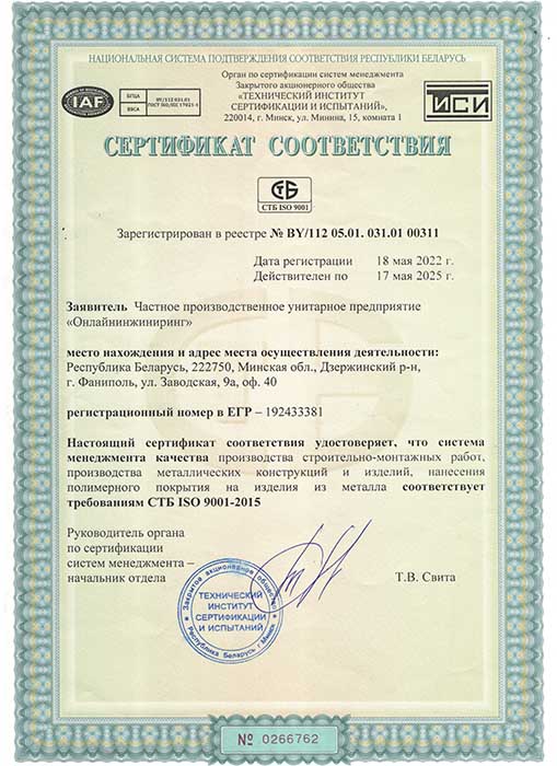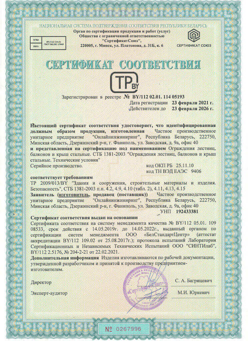 Сертифицированное производство металлических ограждений, ограждений из нержавейки и стекла гарантирует качество выпускаемой нами продукции.
