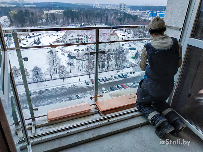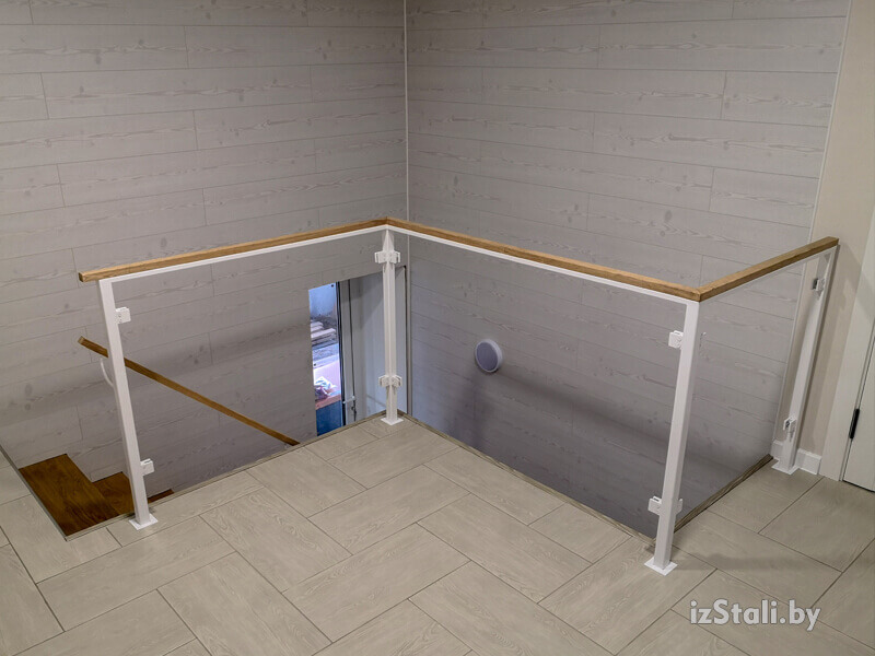 Поверху стекла в ограждениях без стоек следует обязательно связать между собой поручнем.