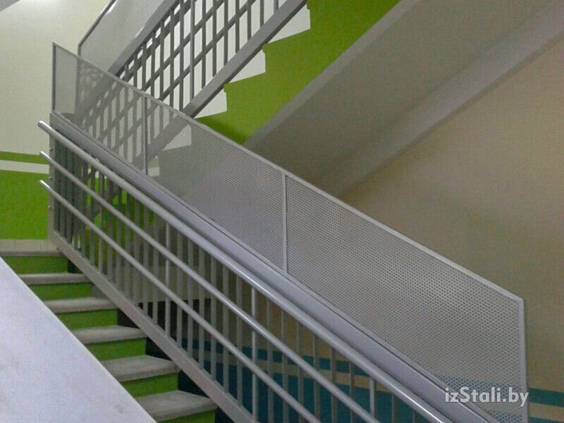 Для выполнения функций безопасности высота стандартных внутренних лестничных ограждений должна составлять не менее 900мм, в дошкольных учреждениях и для ограждений наружных лестничных маршей и площадок - 1200мм, для балконов зданий до 30м - 1000мм (свыше 30м - 1100мм), для крыш - 600мм (согласно СТБ 1381-2003). Для обеспечения должных требований безопасности для детей заполнение пролетов у ограждений должно исключать возможность перелезания через него, фактически не должно быть горизонтального заполнения, а шаг вертикального заполнения должен быть не более 150мм.